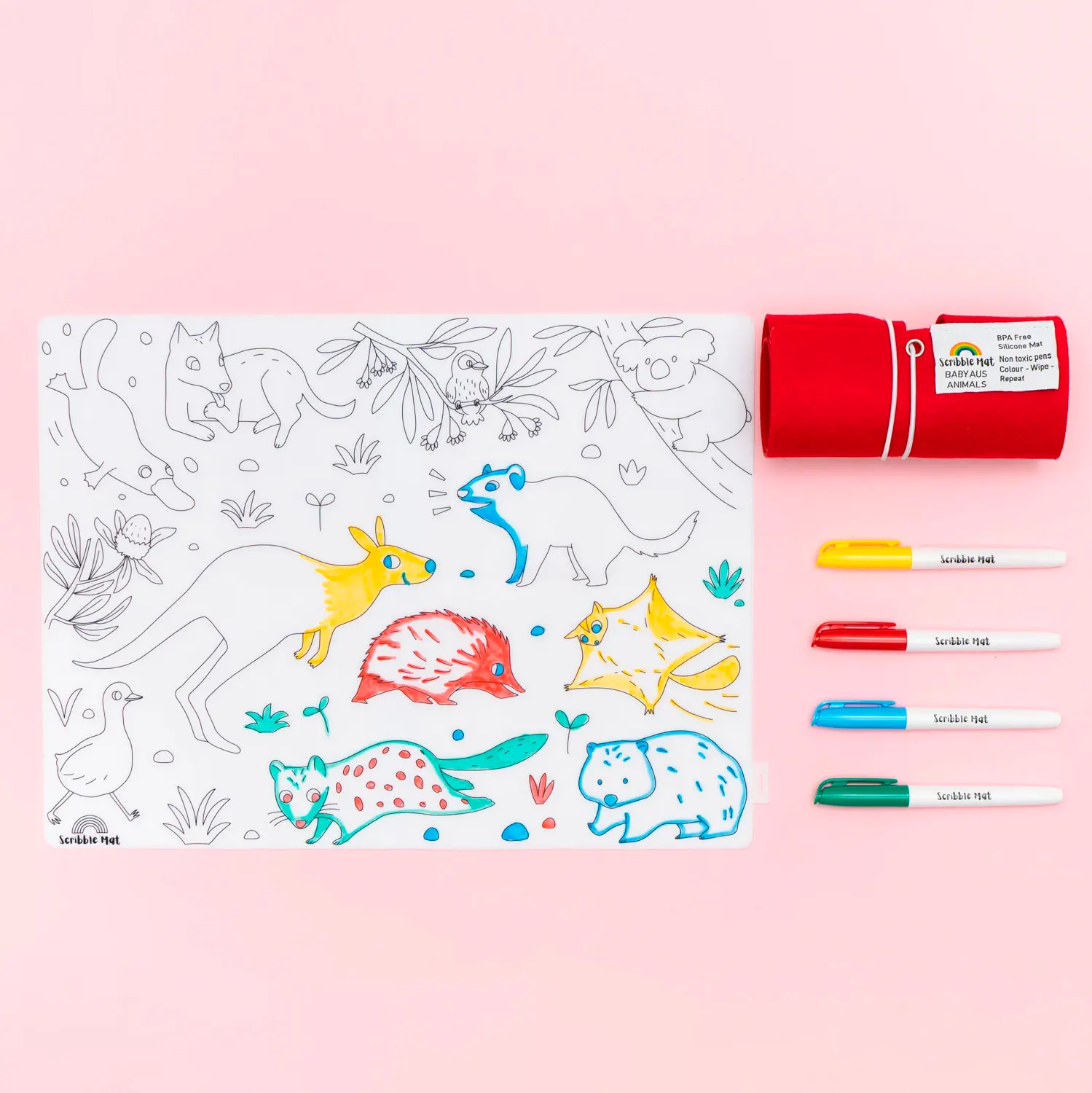 Produktinformationen "Scribble Mat 4 Farben / 4 colors - Australien Animals"
