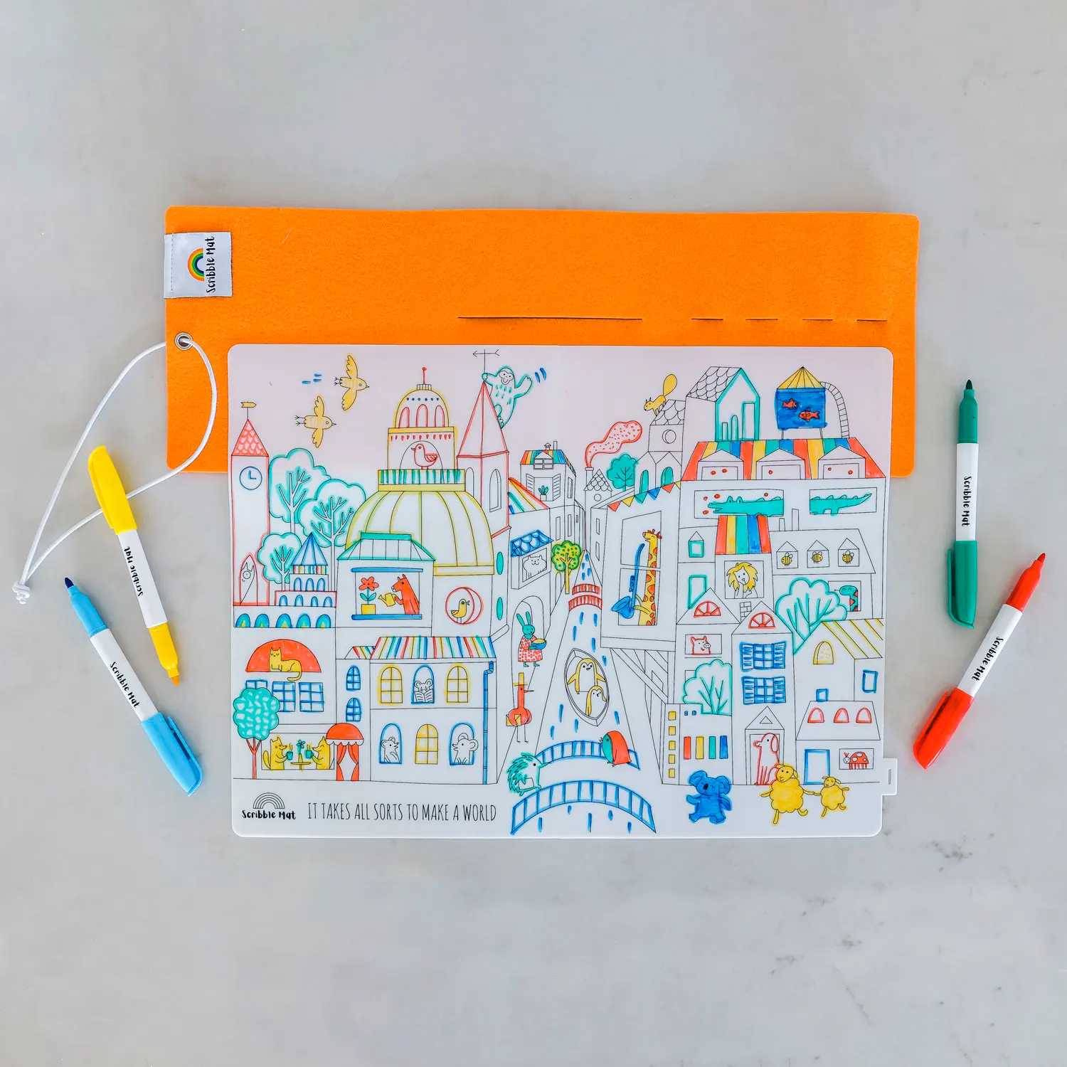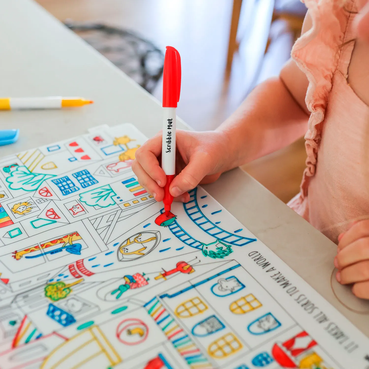 Egal ob zu Hause, im Restaurant, im Auto oder wenn das Warten mal wieder ewig dauert – Scribble Mat sorgt für endlose Malerei. Ganz nebenbei fördert sie auch noch Feinmotorik, Konzentration und Fantasie.
