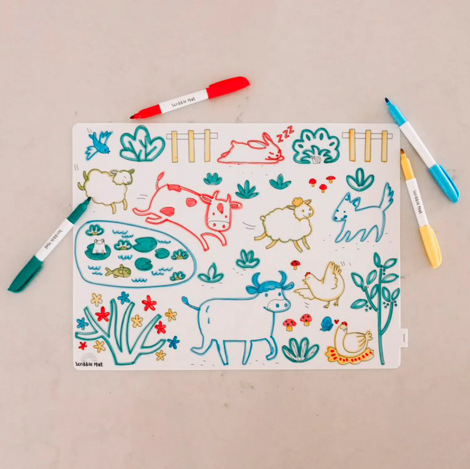 Produktinformationen "Scribble Mat 4 Farben / 4 colors - On the farm"