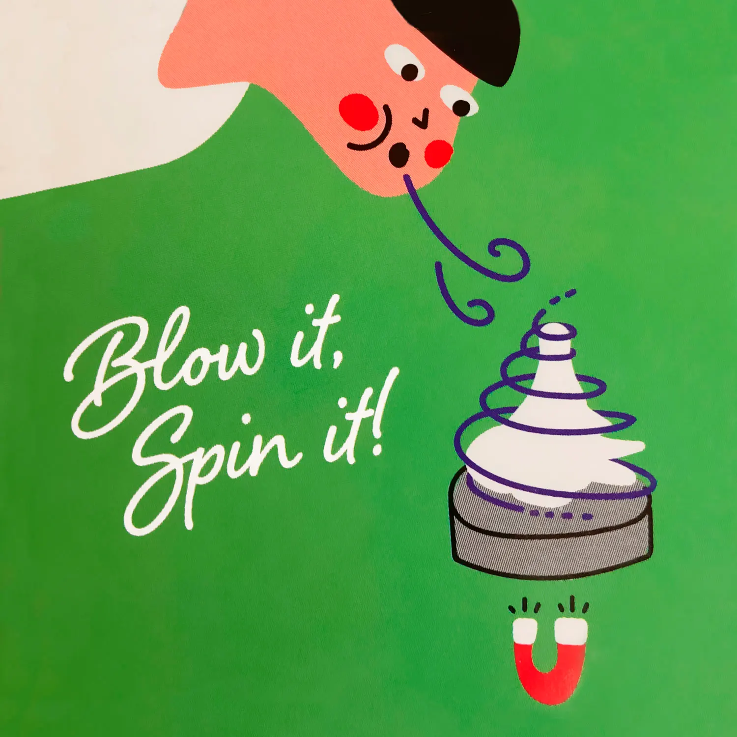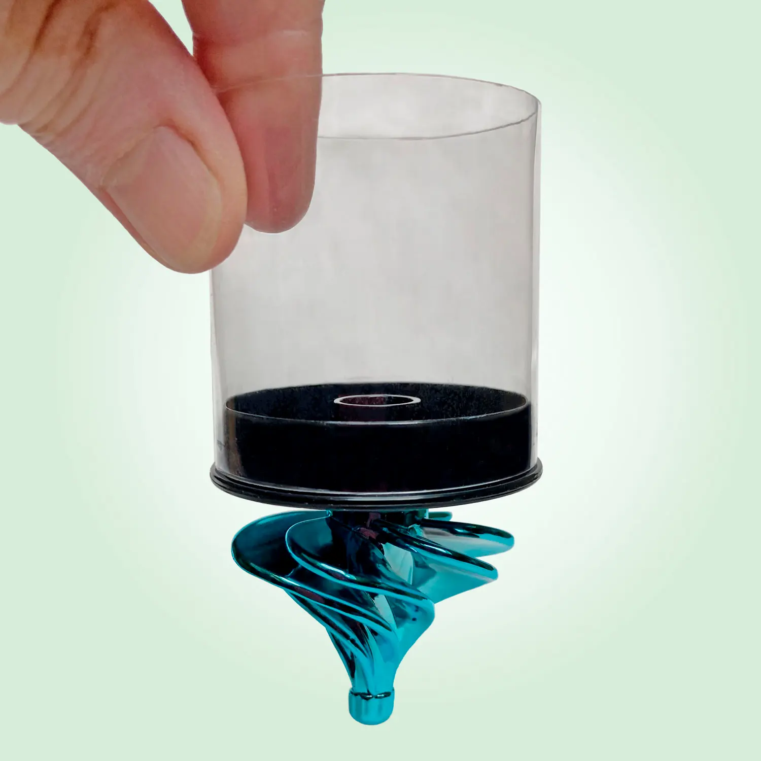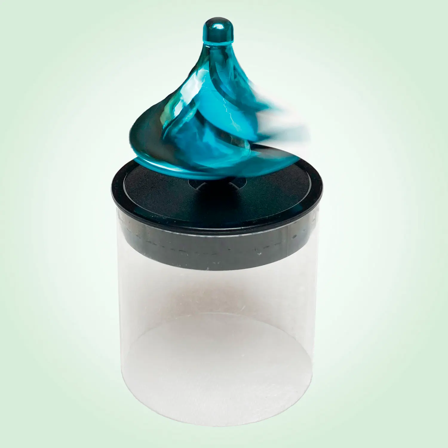Du kannst auch auf herkömmliche Art und Weise mit ihm spielen und ihn mit den Fingern drehen lassen. Die Verpackungsdose ist unten magnetisch, dadurch kann auch hängend gekreiselt werden.