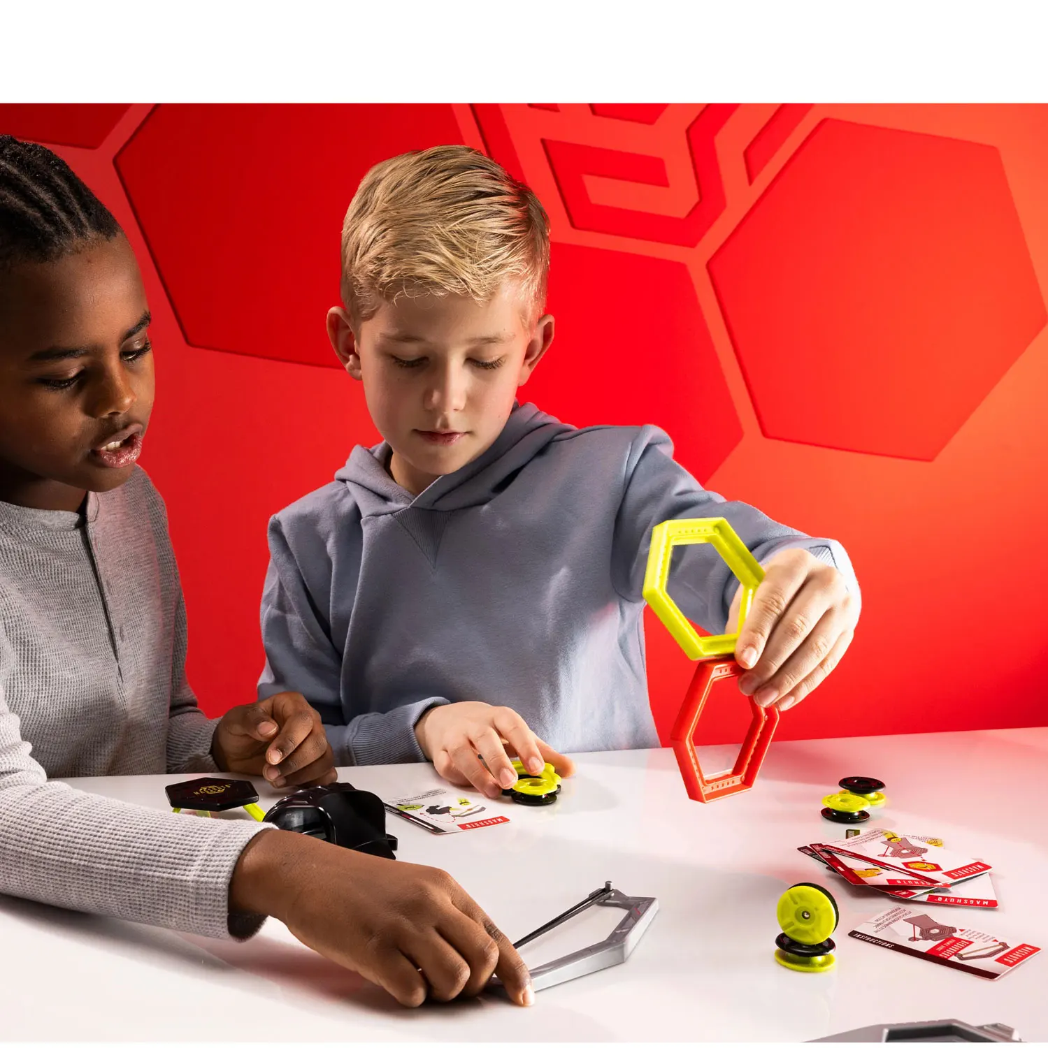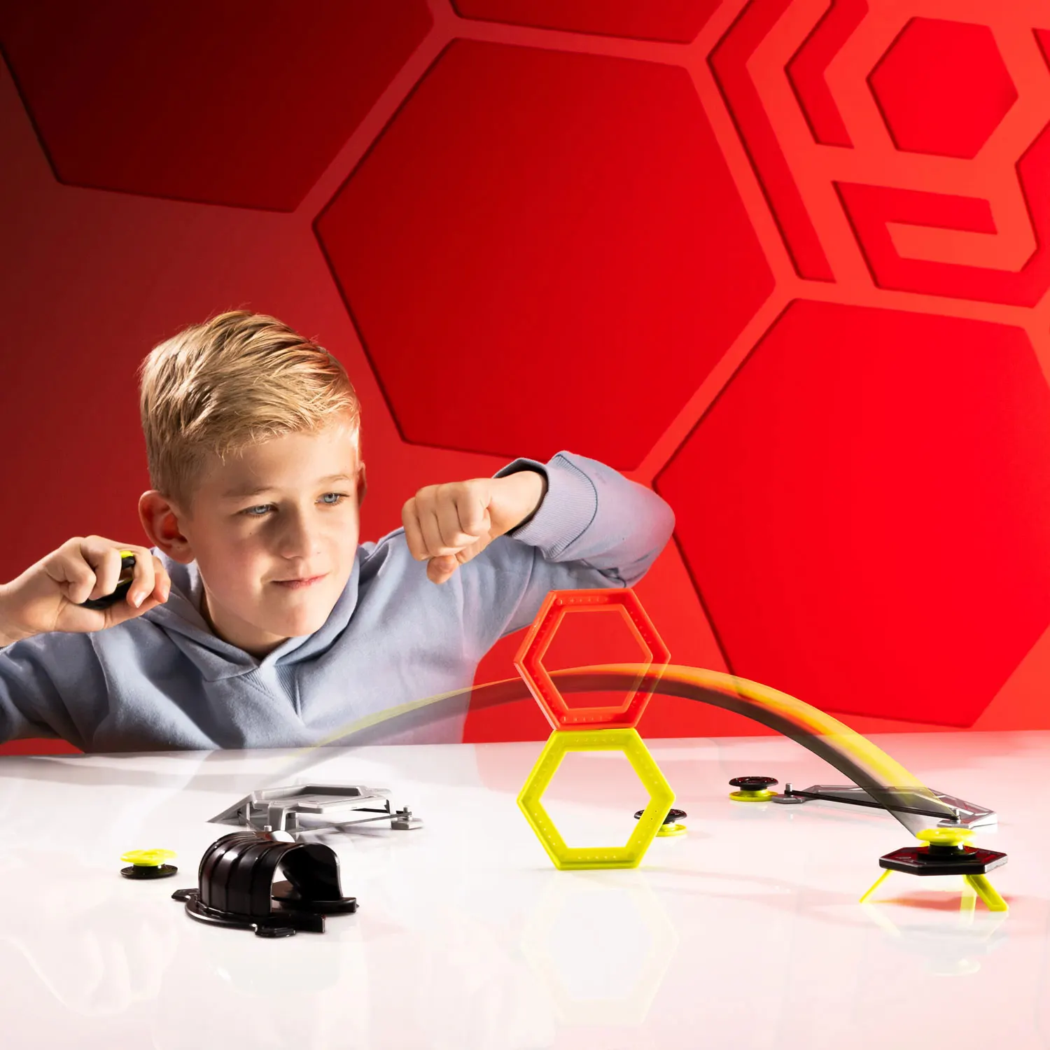 Enthält: Stunt-Modul, Mag-Modul, 2 Hex-Ringe, Tunnelrampe, Rebounder, Launcher, 5 Mag-Pods, 15 Challenge-Karten