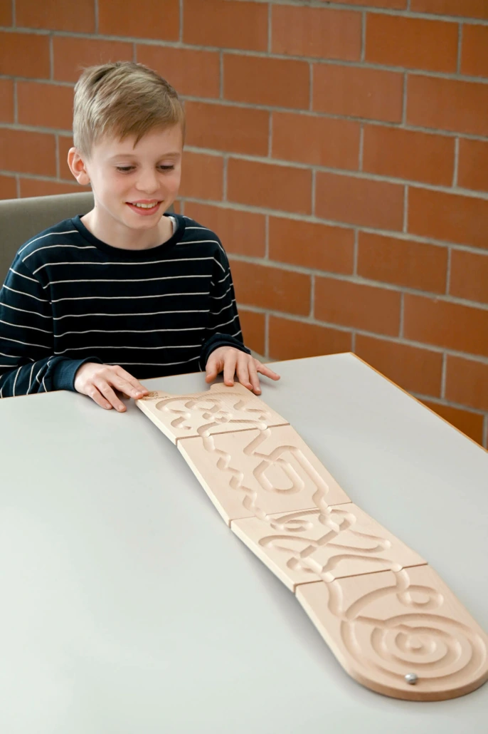Durch geschicktes Antippen und mit Hilfe der Schwerkraft wird eine Kugel durch den Parcours gelotst.Drei Felder je 16 x 22 cm, mit Magneten verbunden, zwei Bälle. Liebevoll von einer Werkstatt für Menschen mit Behinderung in Deutschland gefertigt.Ab 5 JahrenDesigned by Neue Freunde