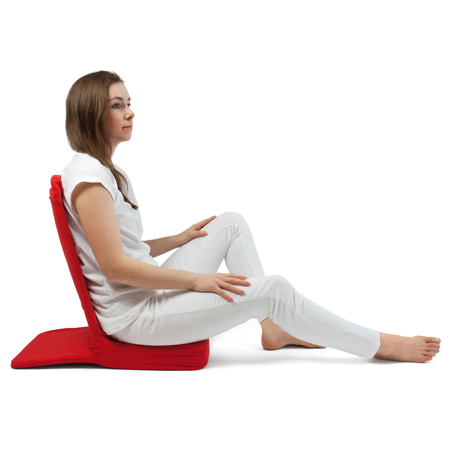 BackJack Original - red by BJ Industries, Inc. This is really a comfortable seat, help to all who like to sit close to the ground to relax, work, play or meditate. Also ideal for discussion groups and therapy sessions. Extremely stable backrest allows a relaxing sit without tipping sideways. Specifications : Tough canvas made from 100% cotton, steel frame can be plugged together ,relative soft padded foam cushion seat ,stackable saves space - dimensions: W 37.5 cm, D 27 cm, backrest height 50 cm - weight: 1900 gr - suitable for children and adults - no sharp corners and edges to avoid injuries - cover can be renewed - 9 colours available - Easy instructions to install in D / GB / F - Made in USA also available: original BACK JACK folding BACKJACK , XL -BACKJACK