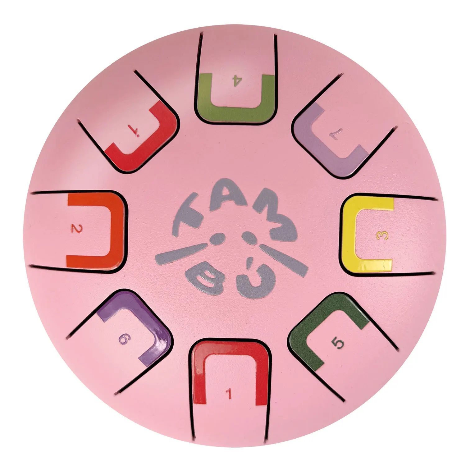 TAMBÚ is a fascinating musical instrument that is ideal for beginners in the world of percussion. The 8-inch steel tongue drum can be played in different ways. When played with the hands, it produces a soft sound. Played with the fingers directly or with the fingerpicks attached, other timbres are produced. By using the drumsticks, the sound produces an echo that is more penetrating, powerful and ethereal. In addition to the possibility of free playing, numbers and colours are painted on the body to correspond with an accompanying songbook and guide the player. The TAMBÚ has 11 notes and is tuned in G major. Contains: - 2 drumsticks - Attachable finger picks. - Sheet music with colour symbols for simple children's songs. - An attractive carrying case, for gentle transport. Also ideal for relaxation and yoga sessions.