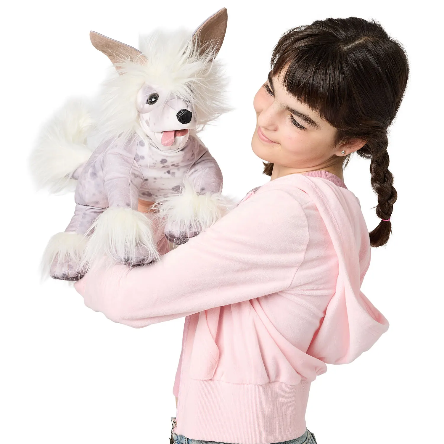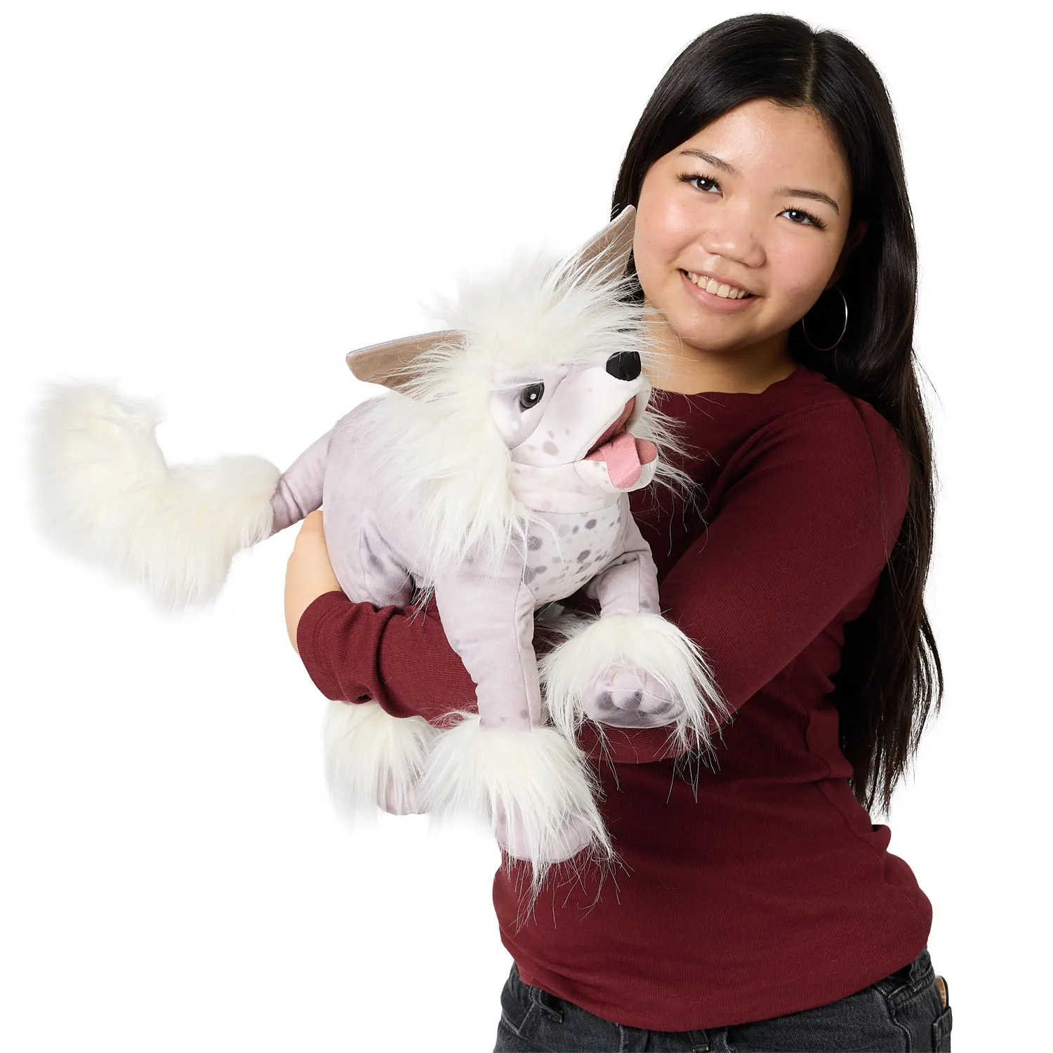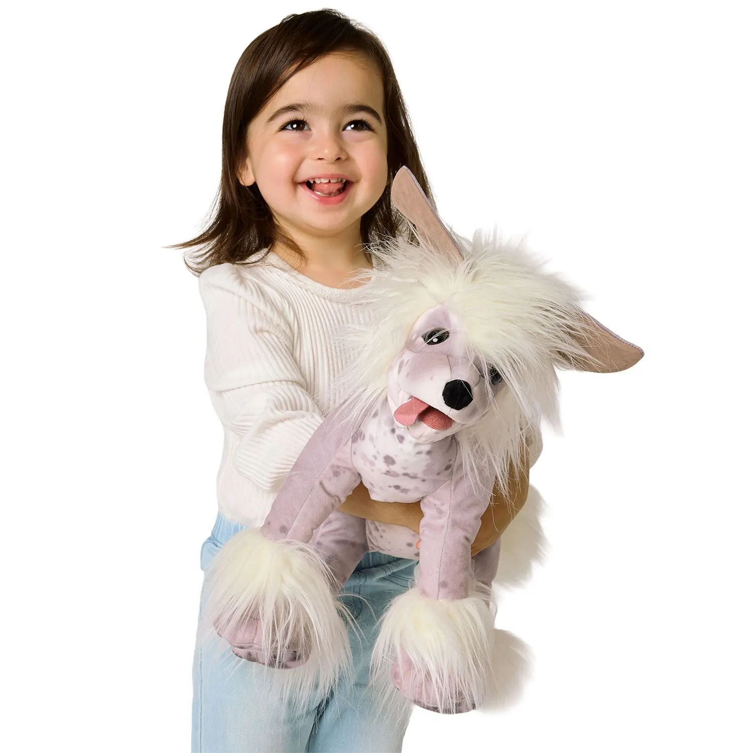 Mit weicher, gesprenkelter Haut und feinem Haar an genau den richtigen Stellen, verfügt diese entzückende Folkmanis® Handpuppe über ein bewegliches Maul mit einer lässigen Zunge, die ihre lebhafte Persönlichkeit perfekt zur Geltung bringt.