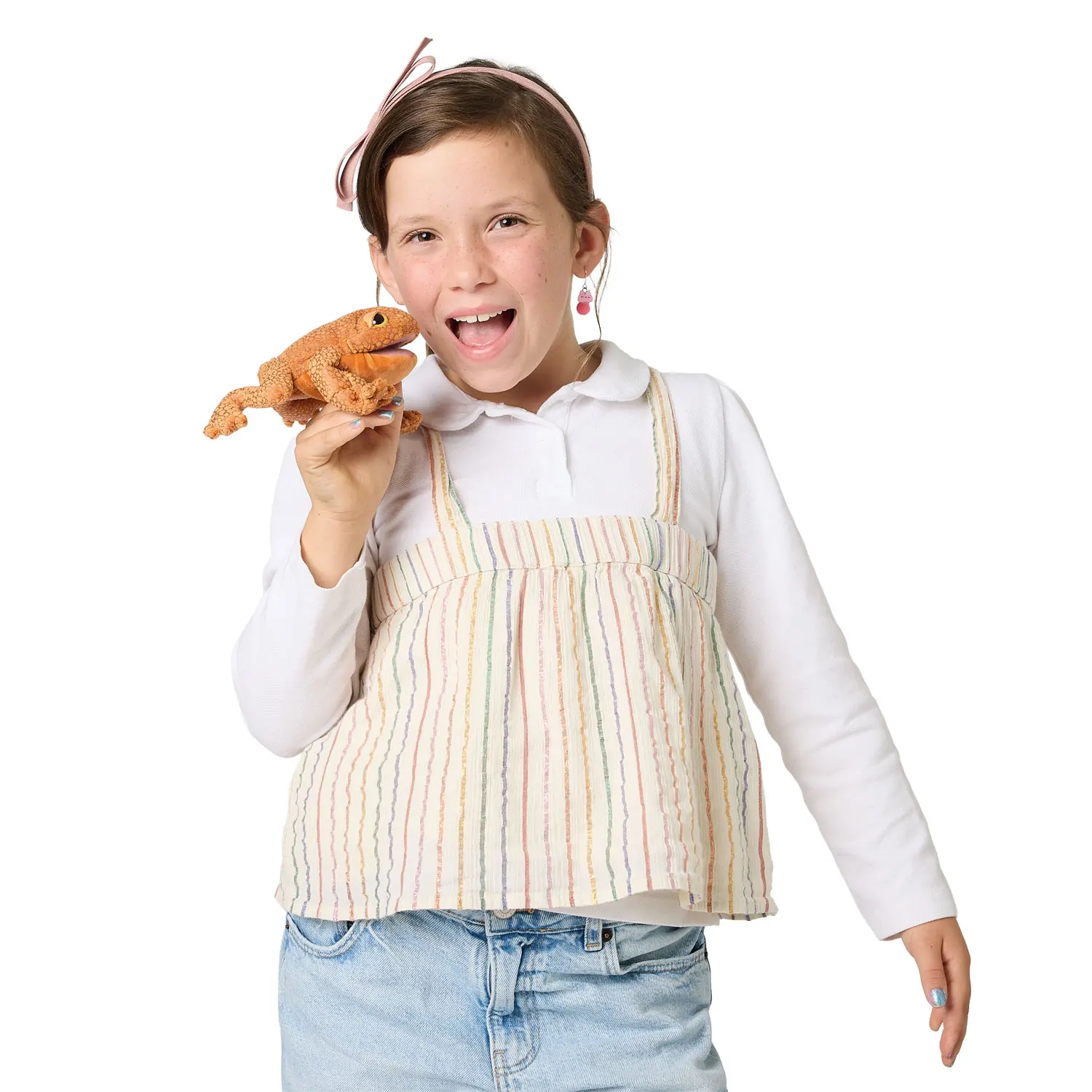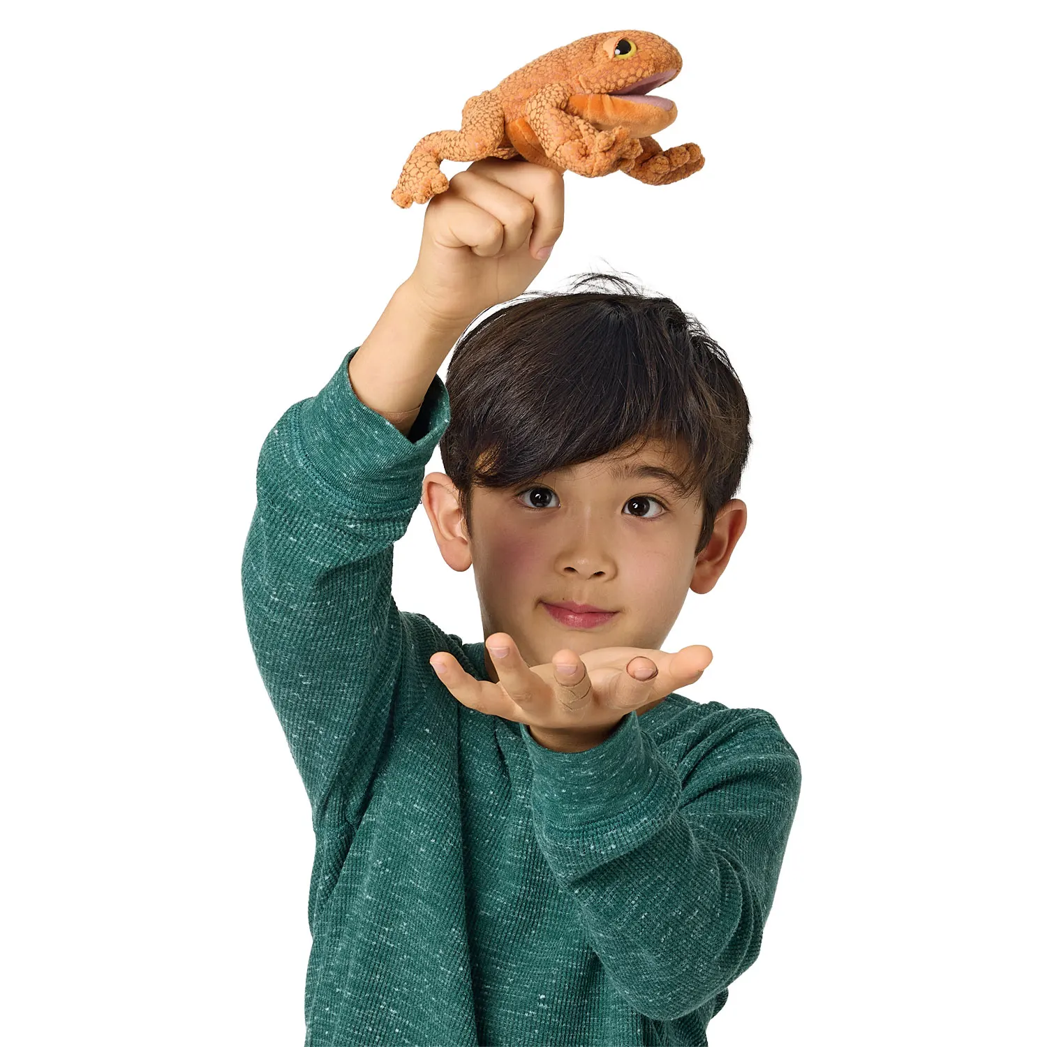 Die Folkmanis® Mini Toad Fingerpuppe bringt Leben auf Ihren Finger. Dank dreifingrigem Design können Mund und Vorderbeine nach Belieben bewegt werden – ideal für fantasievolle Geschichten und lustige Spielmomente.