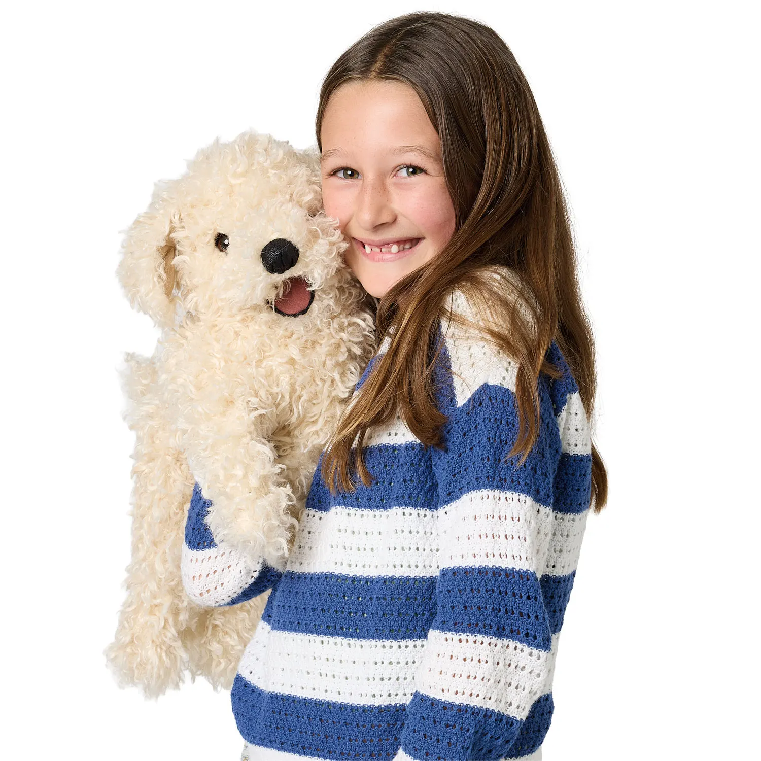 Dieser unglaublich weiche Holländer fühlt sich an wie ein richtiger Hase! Mit creme- und kaffeefarbenem Fell und sehr realistischen Ohren und Pfoten sieht es aus, als würde es jeden Moment davonhoppeln. Man muss es sehen, um es zu glauben. Kuschelweich.Länge: 23 cm, Höhe: 25 cm, Breite: 15 cmSpielbar: Kopf, Arme